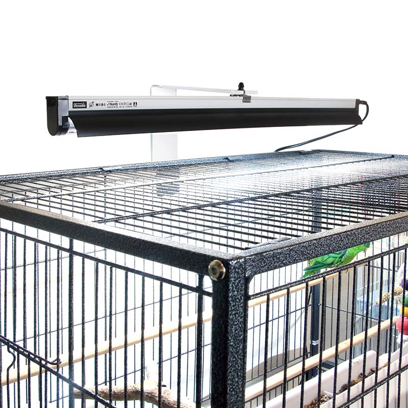 • PureSun-Midi é um novo e exclusivo sistema de iluminação da Arcadia Bird, líder mundial em pesquisa e tecnologia de espectro total + UV-B para pássaros.