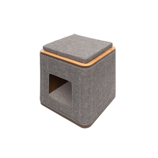 O New Vesper Cube é um gabinete raspador que proporcionará aos seus gatos o maior conforto, com a sua almofada de espuma viscoelástica extra espessa perfeita para o seu gato descansar. A base é feita de um material muito forte e de boa qualidade, madeira de densidade média de alta qualidade e é complementada por uma cobertura lateral removível feita de um tecido resistente a riscos de alta qualidade. O novo Vesper Cube pode ser fácil e harmonicamente integrado na decoração de qualquer casa.