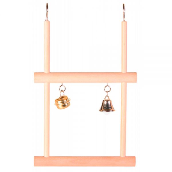 BALOIÇO DUPLO EM MADEIRA C/ SINO P/ AVES