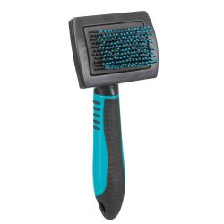 cartão de cerdas de nylon com pontas arredondadas é ideal para suavizar os pêlos do seu gato e desembaraçar o cabelo, ao mesmo tempo que proporciona uma massagem estimulante.Também pode ser usado em gatos com pêlos mais grossos para evitar o endurecimento.  A escova de mão de borracha remove o cabelo solto durante a realização de uma massagem com suas pontas flexíveis de borracha, sentindo-se como uma mãe lambendo um gatinho. O pincel se encaixa na palma da sua mão e seu toque relaxante o torna ideal para iniciar a sessão de escovação.