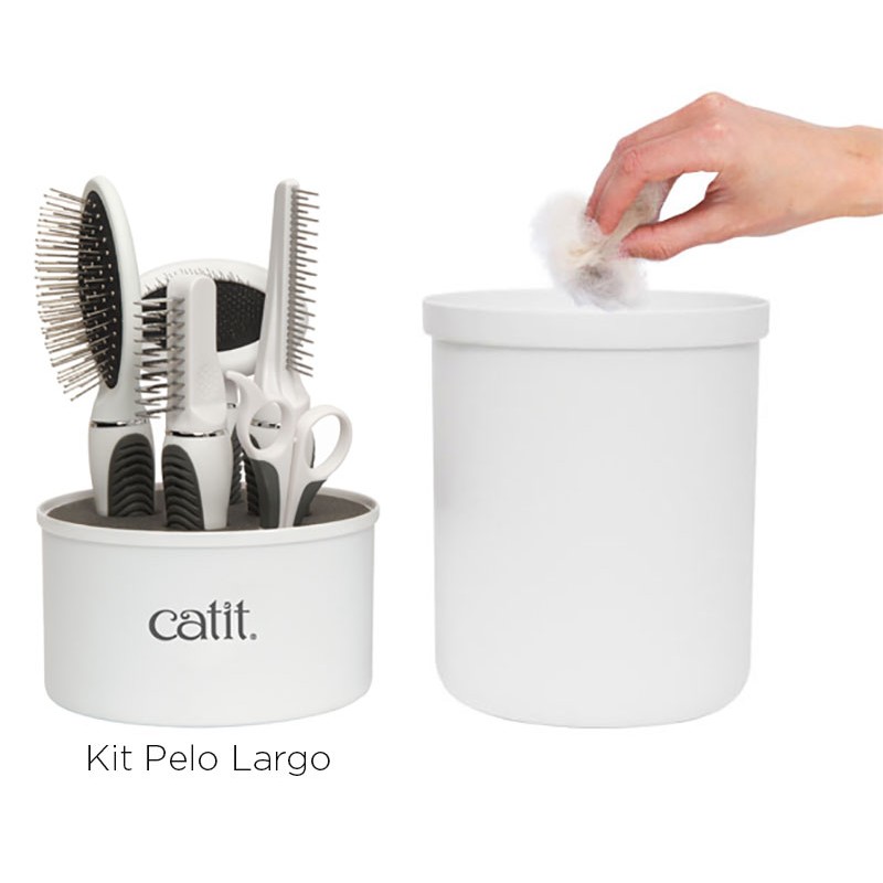 - O kit Grooming Catit for Long Hair satisfaz as necessidades específicas de um gato de cabelo médio ou longo, enquanto o kit de cabelo curto faz isso para os gatos de cabelo curto.