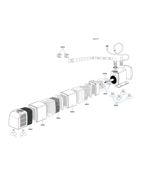 Portanto, a extensa gama de acessórios – composta por tubos curvos, conectores de tubos, bem como barra pulverizadora e ventosas – permite instalar os filtros do aquário em várias posições. Ou seja, este filtro pode ser estendido modularmente com as câmaras de filtro disponíveis separadamente.