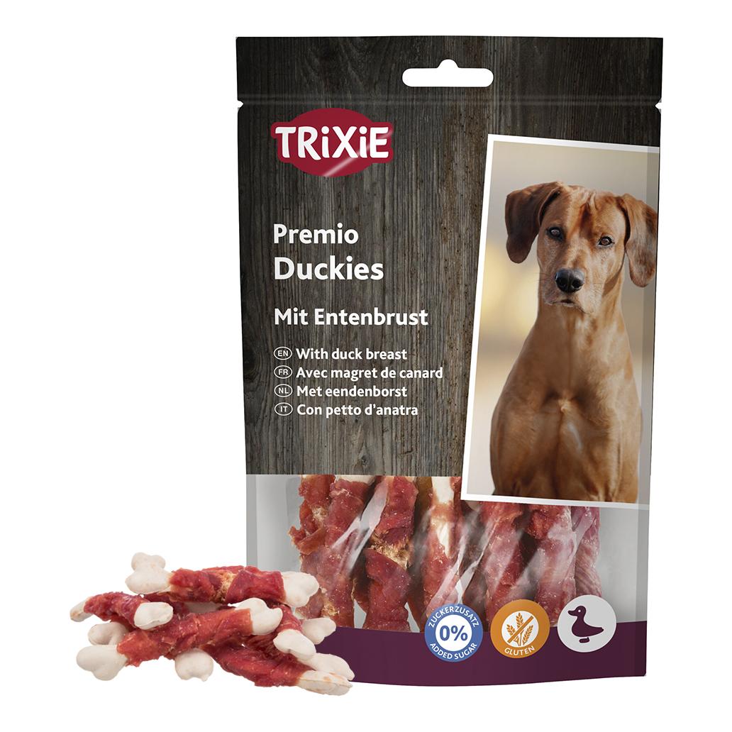 Os snacks Trixie Premio Duckies Ossos de Cálcio com Filete de Peito de Pato são ideais para dar ao animal entre as refeições. Possuem um alto teor de carne (70%), sendo ricos em proteínas e são enriquecidos com cálcio, o qual é importante para fortalecer os dentes e os ossos dos cães. Estes snacks não contêm glúten, pelo que ajudam a reduzir as sensibilidades alimentares do animal. A receita sem açúcares adicionados, para além de ser benéfica para a saúde do cão, ajuda a controlar o seu peso. A embalagem com fecho zip mantém as propriedades do alimento por mais tempo, ajudando a conservar a sua frescura.